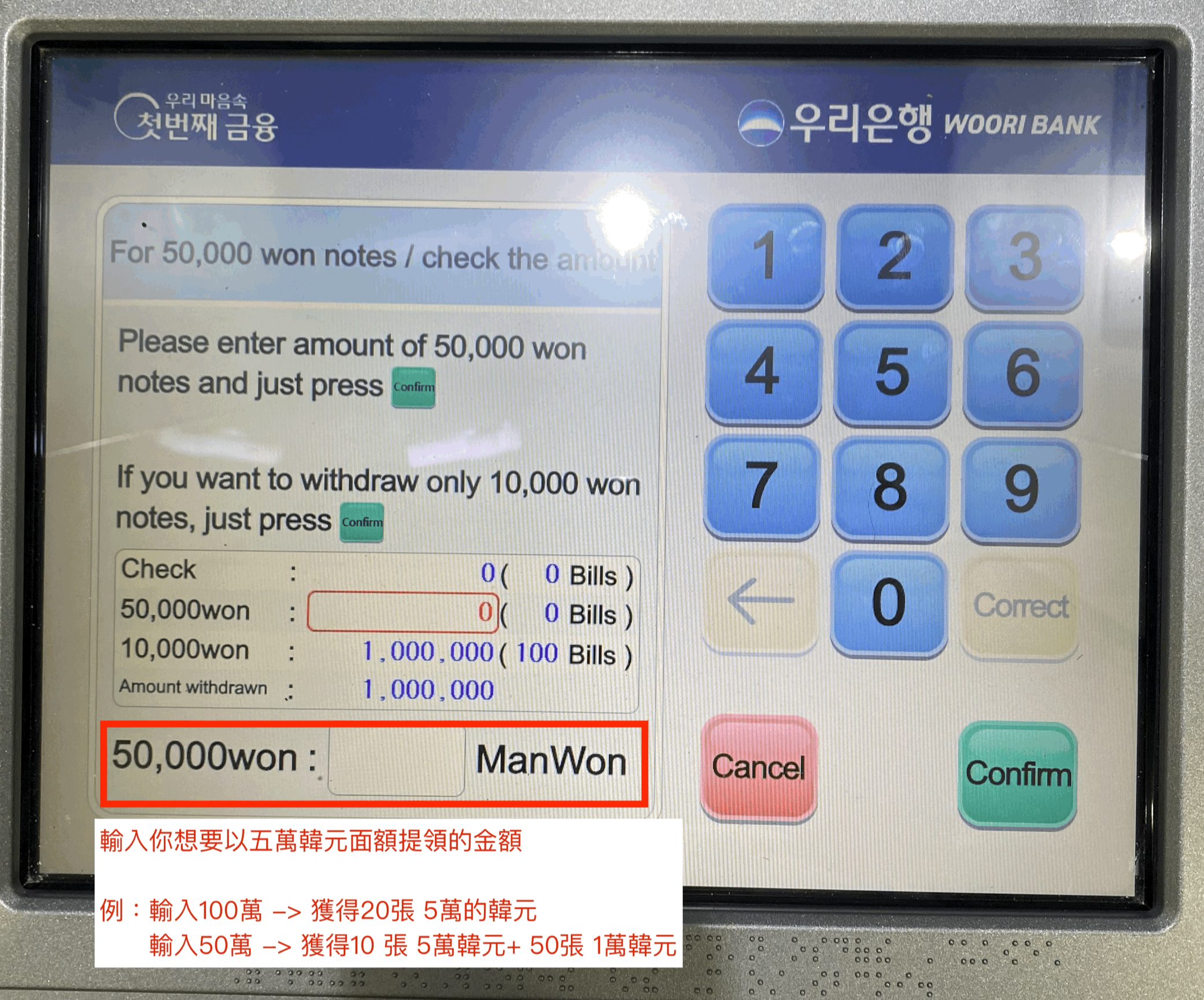 今年(2023) 二月的時候,我提款韓幣100萬時