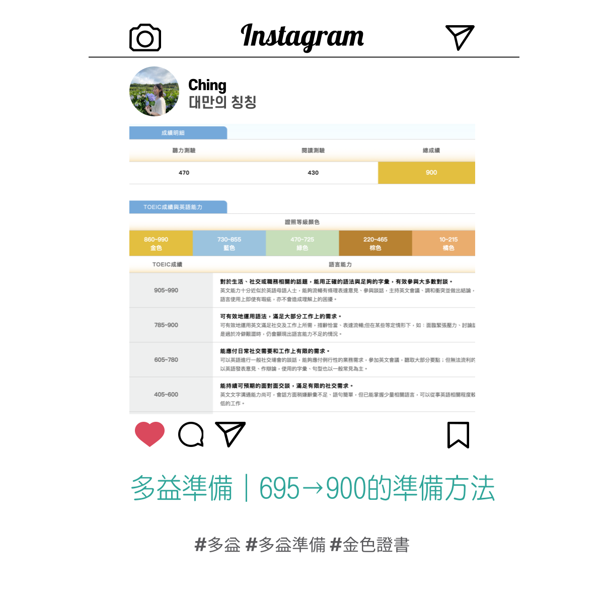 嗨~今天要來分享這週才熱騰騰拿到多益金色證書900分的準備過程。